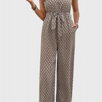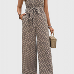 Confiada y sin esfuerzo, Carmela aporta un giro audaz al vestuario de verano. Con un llamativo estampado geométrico, este mono sin mangas está confeccionado en una mezcla de algodón transpirable que se mueve contigo. La cintura con lazo favorecedora y la silueta de pierna ancha crean un look relajado pero refinado, perfecto para paseos al sol, brunchs elegantes o reuniones casuales por la tarde.