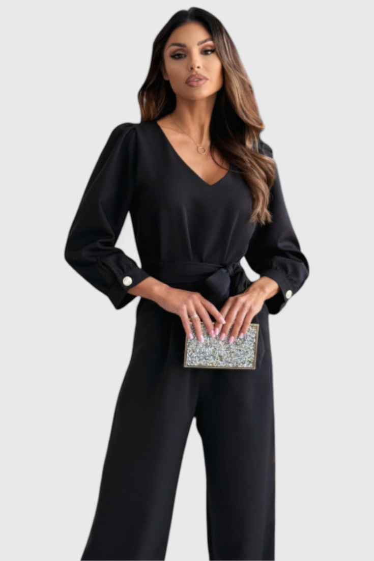 Ariane Mono de Pierna Ancha con Escote en V y Cintura con Lazo