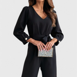 Pulido pero desenfadado, el Mono Ariane redefine la vestimenta de una sola pieza con elegancia moderna. Con un escote en V favorecedor, una silueta fluida de pierna ancha y mangas largas, está diseñado para la comodidad sin comprometer el estilo. La cintura con lazo te permite moldear el ajuste para realzar la figura, convirtiéndolo en una opción versátil para todo, desde brunchs relajados hasta eventos nocturnos.